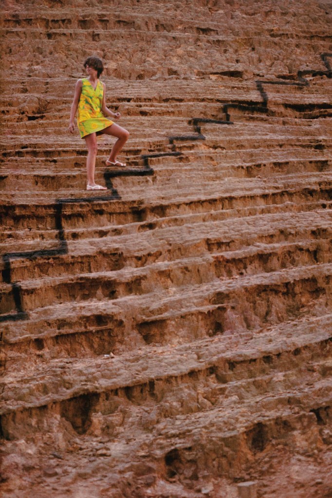 Um exemplo. Em 1968, Carmela Gross e alguns dos amigos que se conheceram no curso de graduação em Artes[5] cumpriam a sugestão do professor Flávio Motta e percorriam o que era então a periferia de São Paulo, estudando as pinturas e sinalizações manuais feitas pelos artesãos que criavam espontaneamente uma linguagem pictórica vernácula local. Em dado momento, a artista resolveu intervir em um barranco criado pela urbanização gradual e pouco planejada do eixo sudeste de crescimento da cidade. Com um spray de tinta preta, traçou rapidamente o desenho de uma escada, uma redundância gráfica que se fazia enquanto o corpo subia os degraus da topografia escalonada do terreno.