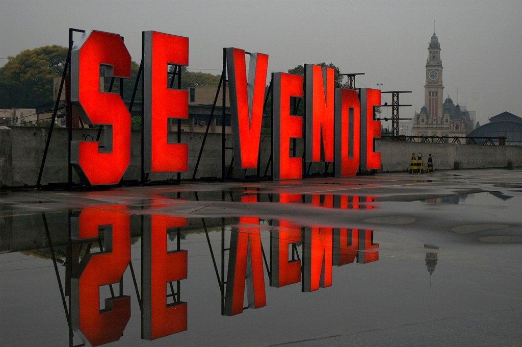 La ciudad atraviesa y penetra mi obra. Es tanto su elemento material como su razón fundamental. Extraigo mis materiales de la ciudad. ¿Qué sentido tiene trabajar con luces fluorescente o de neón, por ejemplo? Tal vez sea distinto en otros países, pero en Brasil, el neón y las luces de colores no sugieren el esplendor de los negocios de éxito, sino que están asociadas a los aspectos más denigrantes de la vida de la ciudad. Hacen pensar en bares, hoteles baratos, panaderías y talleres mecánicos en las afueras de la ciudad. Casi siempre están asociadas a lo más frágil. La luz de neón, la iluminación tubular fluorescente, generalmente es símbolo de ambientes precarios, degradados y muy básicos. De eso es de lo que hablo y, por tanto, eso es lo que me interesa. Las luces de colores me parecen una síntesis estridente de las contradicciones que existen en la calle, el espacio político por excelencia.